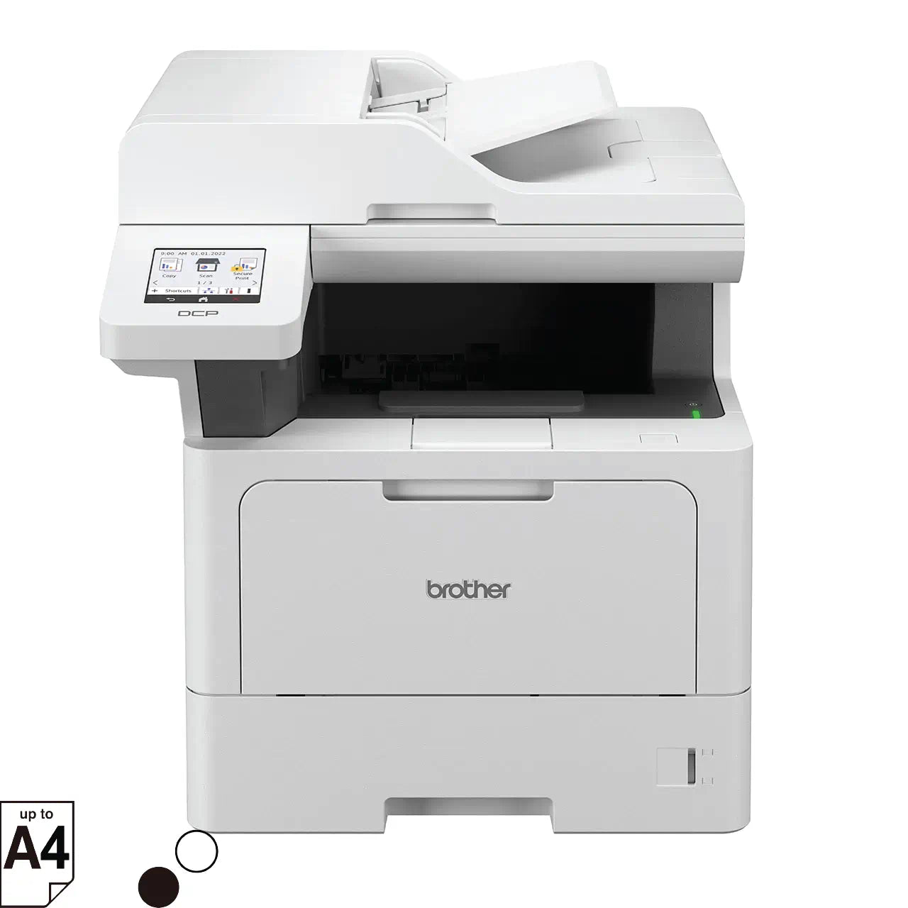 - Auto 2-sided (Duplex) printing, 70 sheets dual CIS Auto-Document Feeder (ADF), 3.5” Colour LCD touchscreen, Security Features, 2GB Memory, 250 Sheets Paper Tray